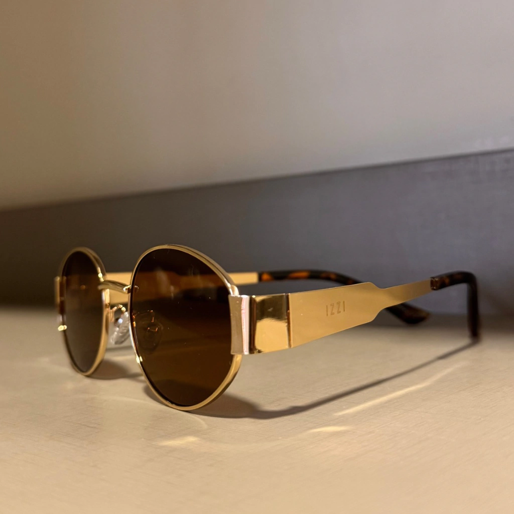 Moderno na medida certa, este modelo redondo se destaca pela lateral em metal dourado, que adiciona um detalhe sutil e elegante à armação. O contraste entre a frente mais discreta e o metal nas hastes traz equilíbrio ao design, resultando em um óculos versátil e cheio de personalidade. Ideal para quem gosta de peças com acabamento limpo, leveza visual e um toque refinado no dia a dia.