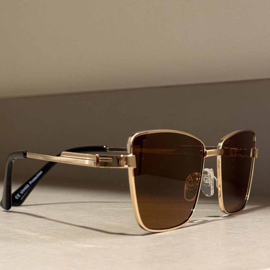 Com linhas marcantes e toque feminino, este modelo quadrado traz um leve efeito gatiado que valoriza o olhar sem pesar no visual. A combinação da lente marrom com o detalhe dourado em metal cria um equilíbrio entre sofisticação e suavidade. Um óculos pensado para quem gosta de se destacar com elegância — ideal para compor desde looks urbanos até produções mais clássicas.